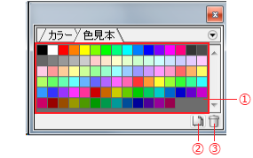 使用する色を選択します。[Shift]キーを押しながらクリックすると、選択している描画色に置き換わります。[Shift]+[Ctrl]キーを押しながらクリックすると、選択している描画色が挿入されます。