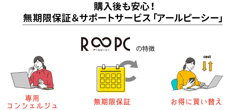 国内NO.1のリユースパソコン生産実績をもつリングロー株式会社が発売する、無期限保証のついた中古パソコン、それが「R∞PC(アールピーシー)」。