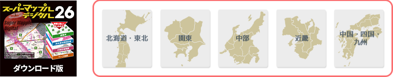 「アプリケーション本体」と「近畿 詳細地図データ」「中国・四国・九州 詳細地図データ」で西日本全域の詳細な地図情報がご利用いただけます。